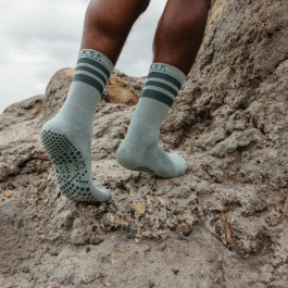 Tavi’s technical triangle grip is based on the performance aspects of a surfboard traction pad. Triangles have three points of attachment so not only do they stay on the socks, but they also provide the most surface area for gripping. That’s why triangles are our favorite shape.